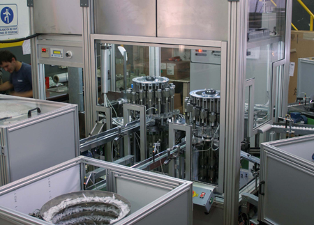 In the assembling process the different pieces that shall make up the final product are attached in consecutive stages. These pieces are delivered in bulk by the “feeders” to the main machine and they come out from it completely assembled. All the process is made mechanically. The different models of the machine give them a great flexibility for adaptation to the distinct types and sizes of products, as well as the quantity of pieces to be assembled.