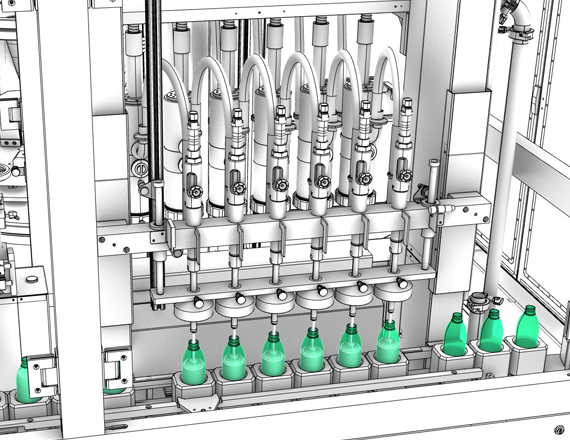 El equipamiento está diseñado para estrategias flexibles de producto, con procesos automatizados adaptables a diversas necesidades. Brinda facilidad y rapidez en el cambio de formatos . El módulo de limpieza automático (CIP), para el circuito de llenado, posee ventajas notables para las industrias Farmacéuticas.
